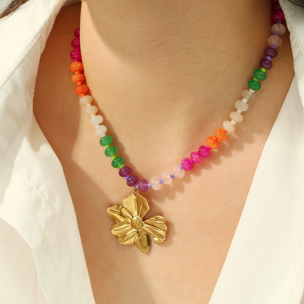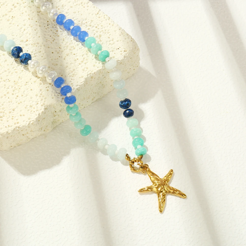 Fashion Rope Braided Handmade Stainless Steel Gold Plated Starfish Shell Heart Flower Charm Necklace for Women Popular Jewelry